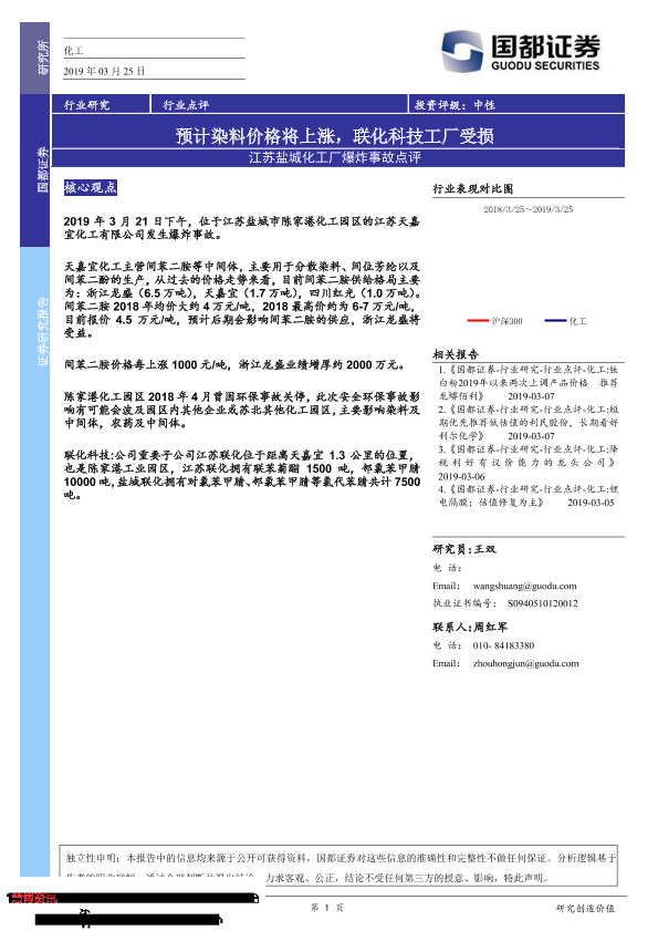 【国都证券】【20190325】江苏盐城化工厂爆炸事故点评:预计染料价格将上涨,联化科技工厂受损-2页