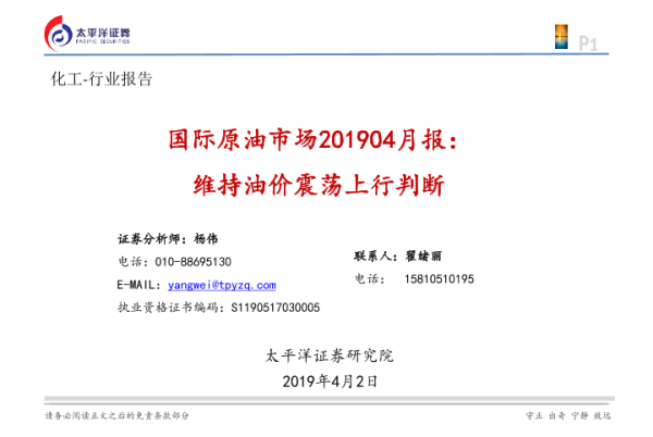 【太平洋证券】【20190402】国际原油市场201904月报:维持油价震荡上行判断-16页
