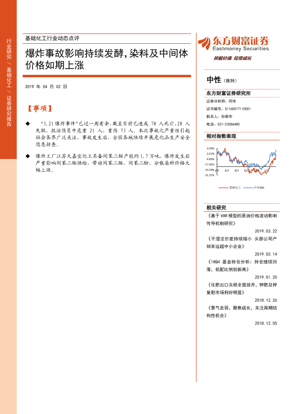 【东方财富证券】【20190402】基础化工行业动态点评:爆炸事故影响持续发酵,染料及中间体价格如期上涨-5页