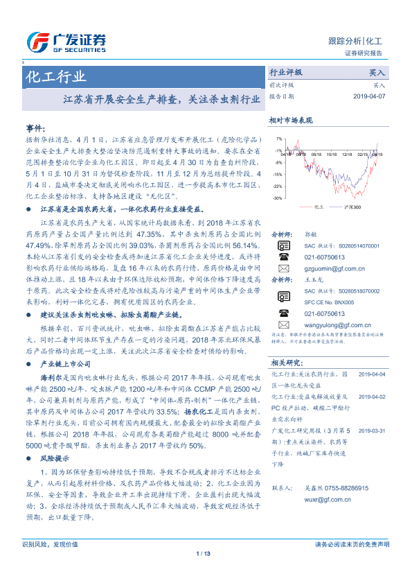 【广发证券】【20190407】化工行业跟踪分析:江苏省开展安全生产排查,关注杀虫剂行业-13页