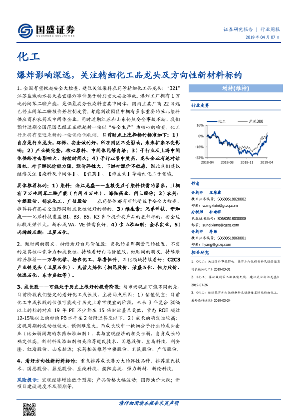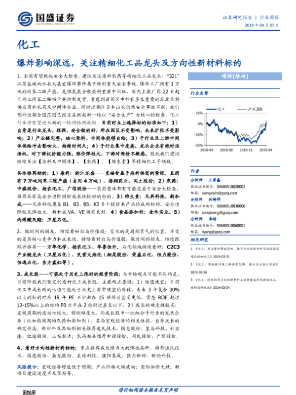 【国盛证券】【20190407】化工行业周报:爆炸影响深远,关注精细化工品龙头及方向性新材料标的-7页