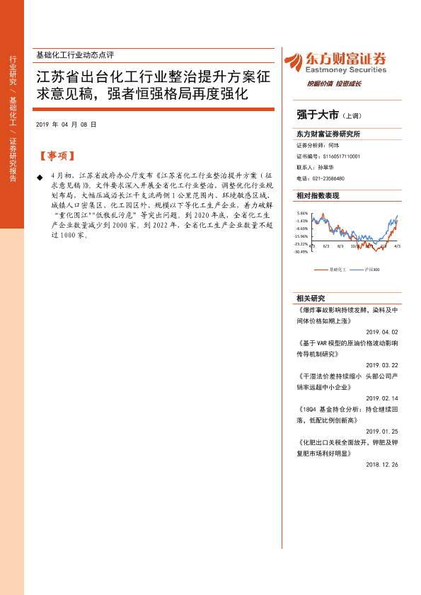 【东方财富证券】【20190408】基础化工行业动态点评:江苏省出台化工行业整治提升方案征求意见稿,强者恒强格局再度强化-3页