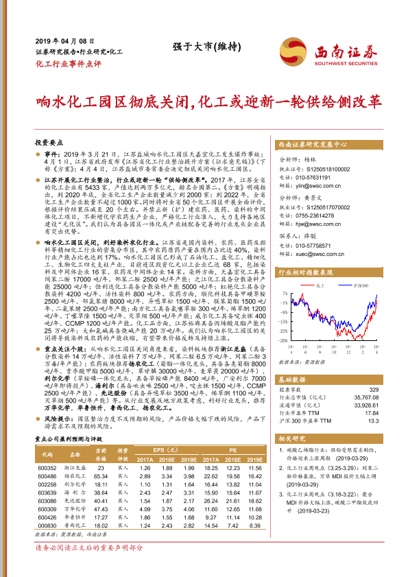 【西南证券】【20190408】化工行业事件点评:响水化工园区彻底关闭,化工或迎新一轮供给侧改革-3页