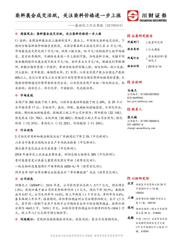 【川财证券】【20190414】基础化工行业周报:染料展会成交活跃,关注染料价格进一步上涨-21页