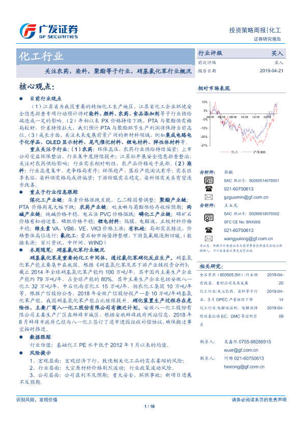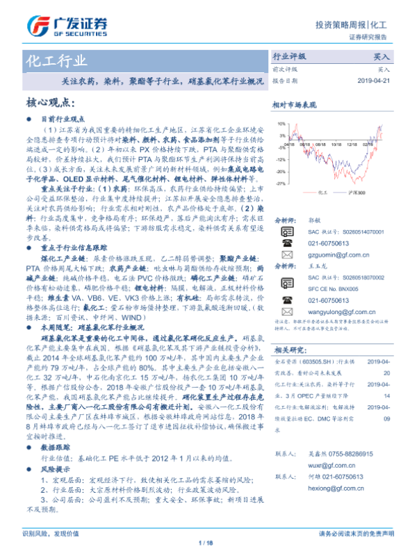 【广发证券】【20190421】20190421-广发证券-化工行业投资策略周报:关注农药,染料,聚酯等子行业,硝基氯化苯行业概况-18页