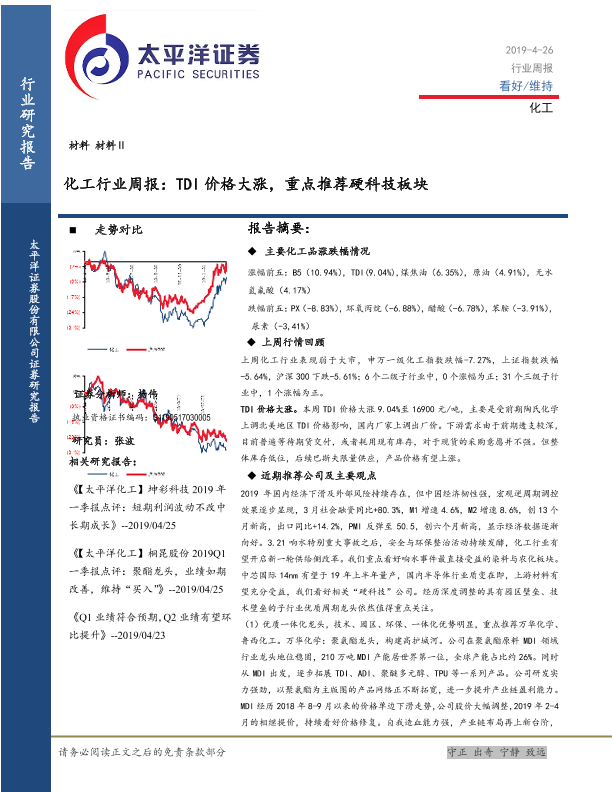 【太平洋证券】【20190426】20190426-太平洋-化工行业周报:TDI价格大涨,重点推荐硬科技板块-39页