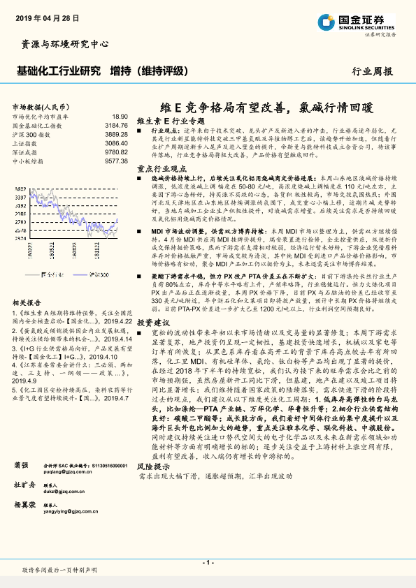 【国金证券】【20190428】基础化工行业研究:维E竞争格局有望改善,氯碱行情回暖-34页