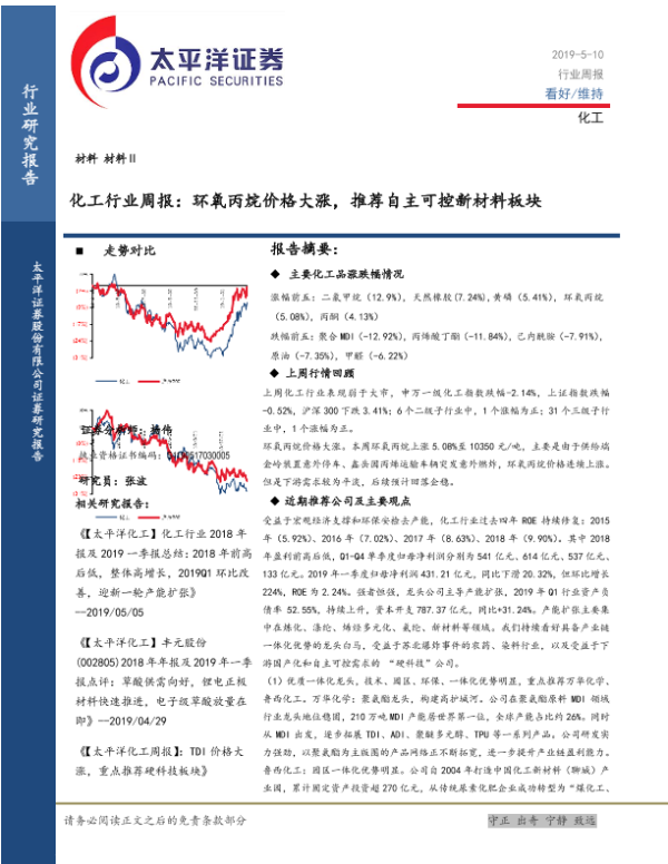 【太平洋证券】【20190510】化工行业周报:环氧丙烷价格大涨,推荐自主可控新材料板块-37页