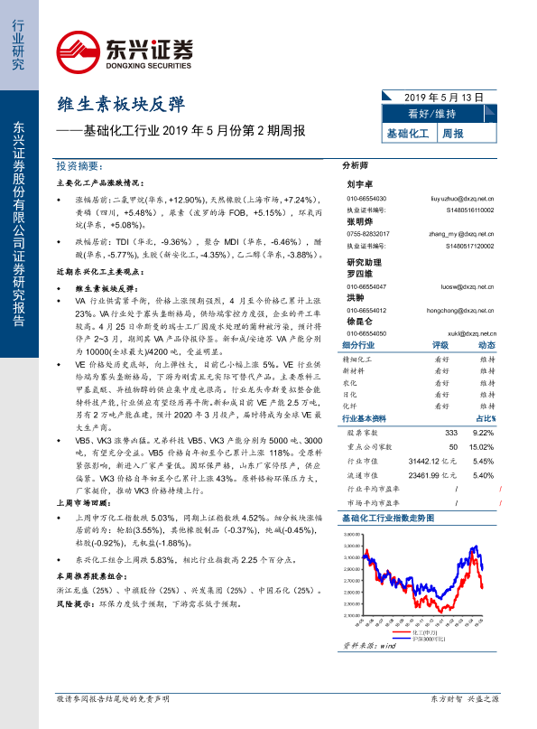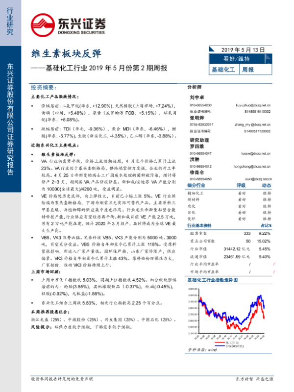 【东兴证券】【20190513】基础化工行业2019年5月份第2期周报:维生素板块反弹-38页