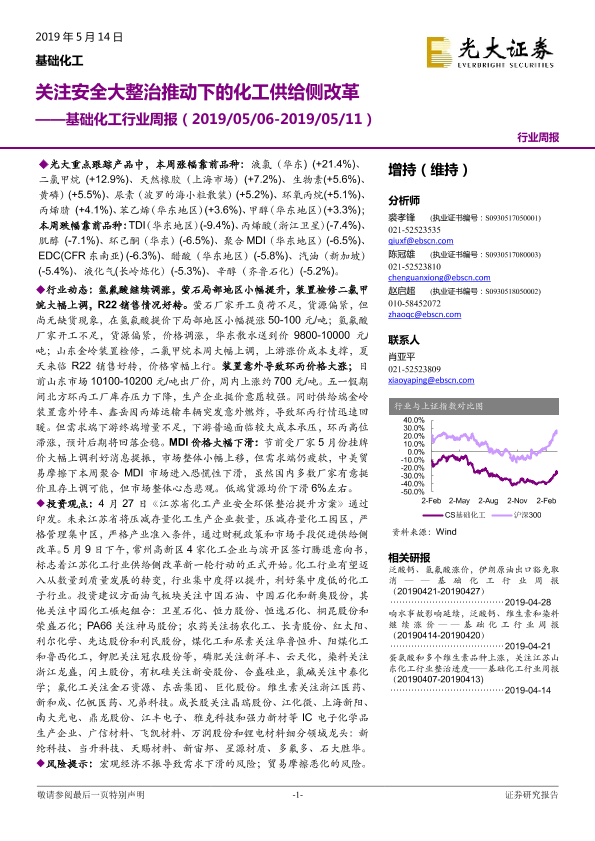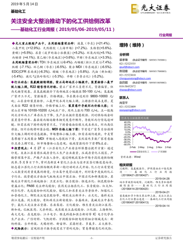 【光大证券】【20190514】基础化工行业周报:关注安全大整治推动下的化工供给侧改革-19页