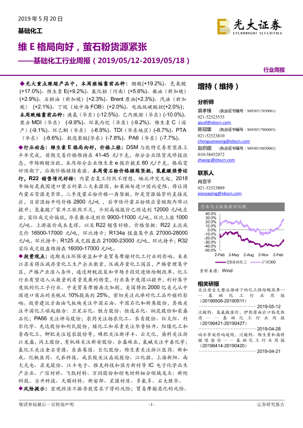 【光大证券】【20190520】20190520-光大证券-基础化工行业周报:维E格局向好,萤石粉货源紧张-19页