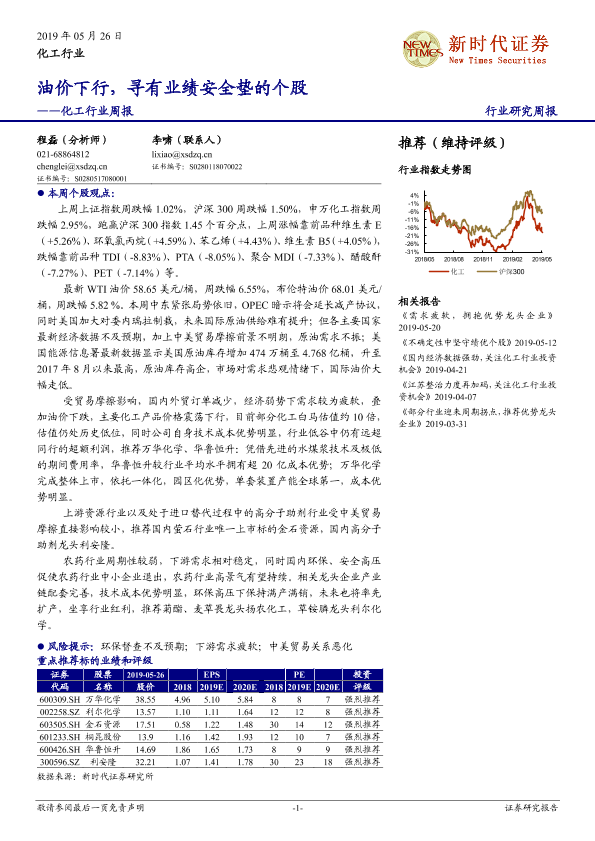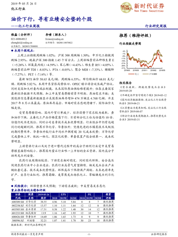 【新时代证券】【20190526】20190526-新时代证券-化工行业周报:油价下行,寻有业绩安全垫的个股-27页