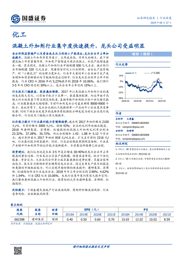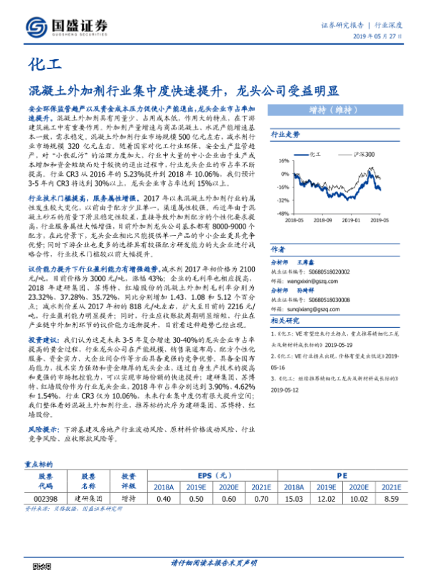 【国盛证券】【20190527】化工:混凝土外加剂行业集中度快速提升,龙头公司受益明显-15页