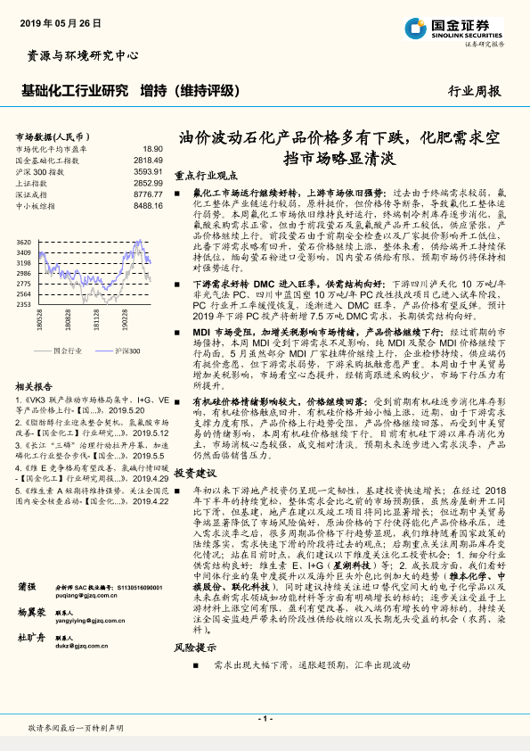 【国金证券】【20190526】基础化工行业研究:油价波动石化产品价格多有下跌,化肥需求空挡市场略显清淡-31页