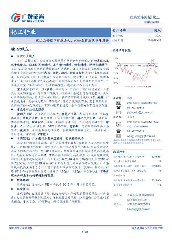 【广发证券】【20190602】化工品价格下行压力大,外加剂行业集中度提升-22页