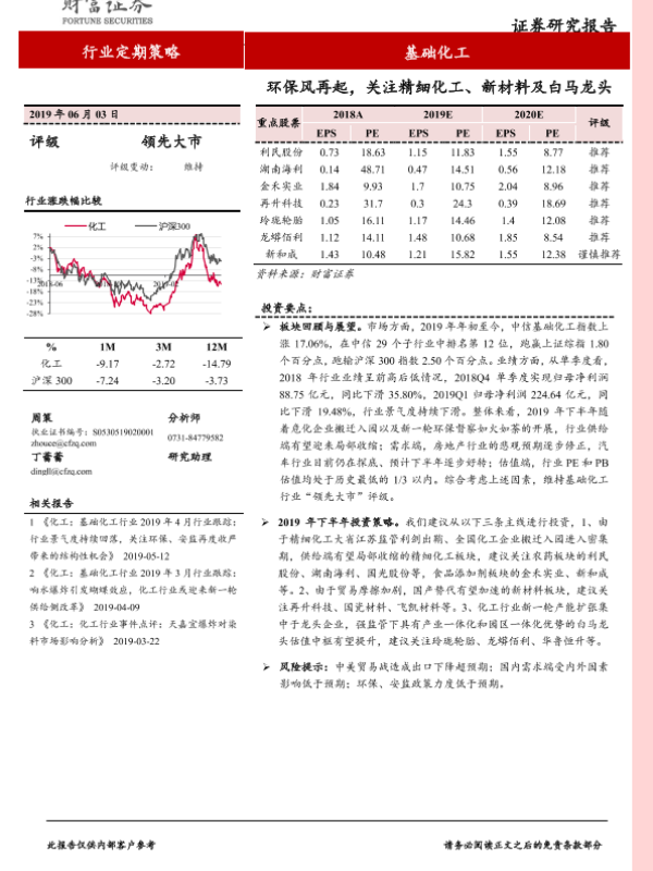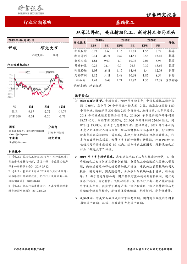 【财信证券】【20190603】基础化工行业定期策略:环保风再起,关注精细化工、新材料及白马龙头-22页