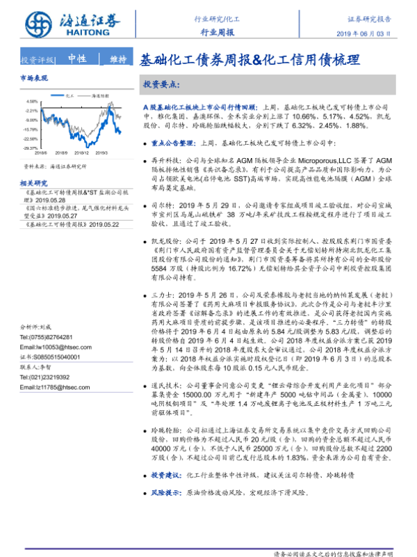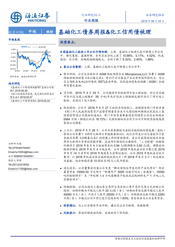 【海通证券】【20190603】20190603-海通证券-化工行业周报:基础化工债券周报&化工信用债梳理-14页