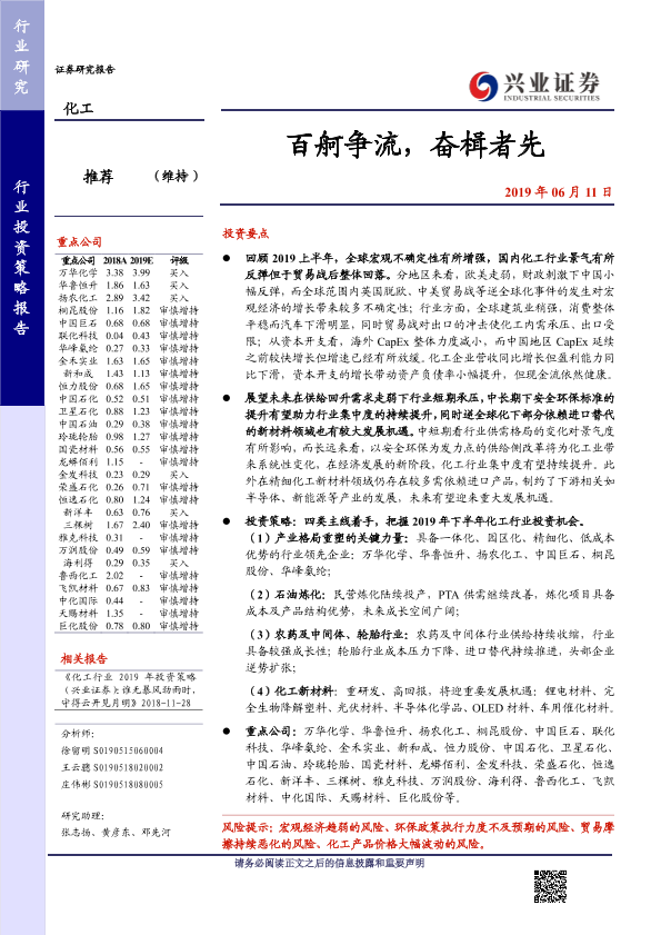 【兴业证券】【20190611】20190611-兴业证券-化工行业投资策略报告:百舸争流,奋楫者先-80页