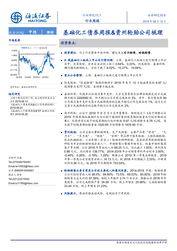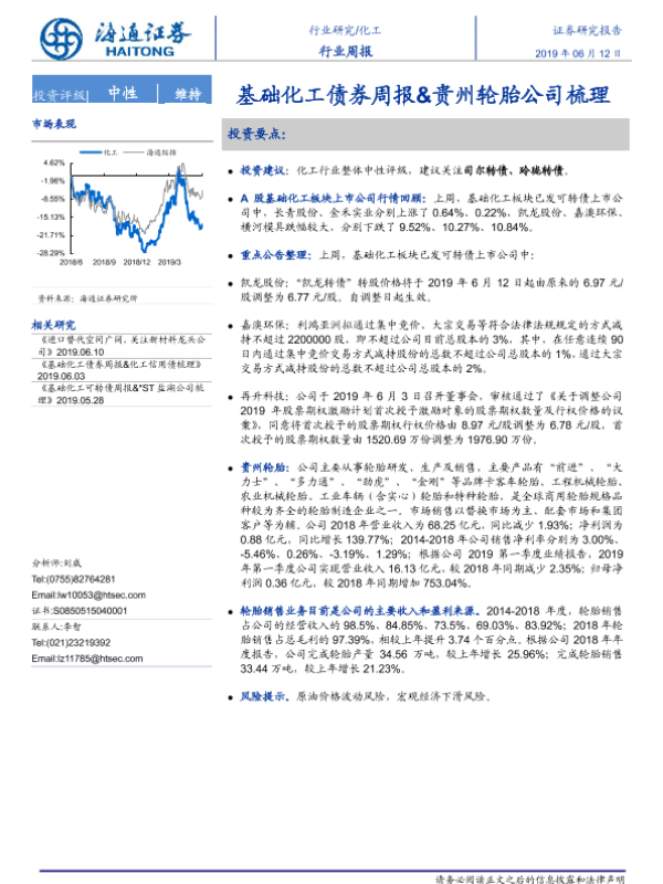 【海通证券】【20190612】20190612-海通证券-化工行业周报:基础化工债券周报&贵州轮胎公司梳理-15页