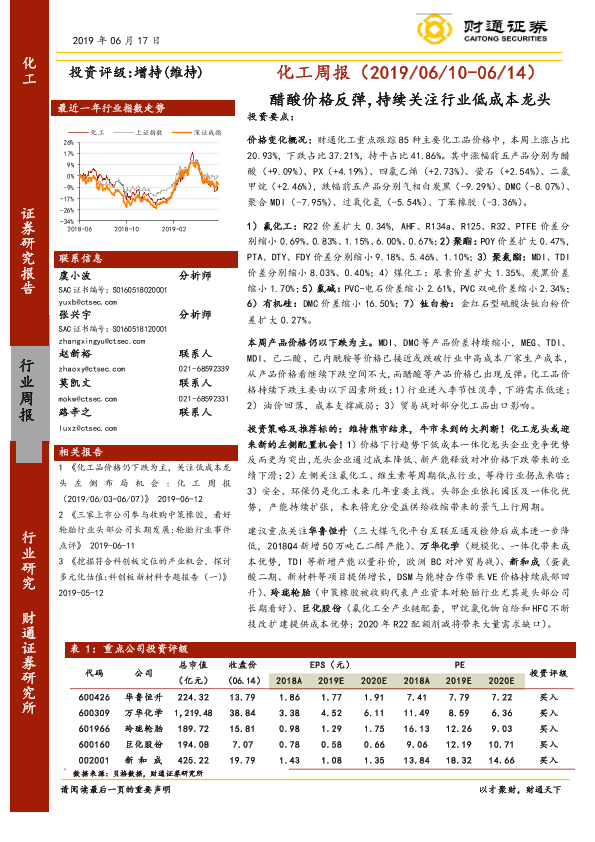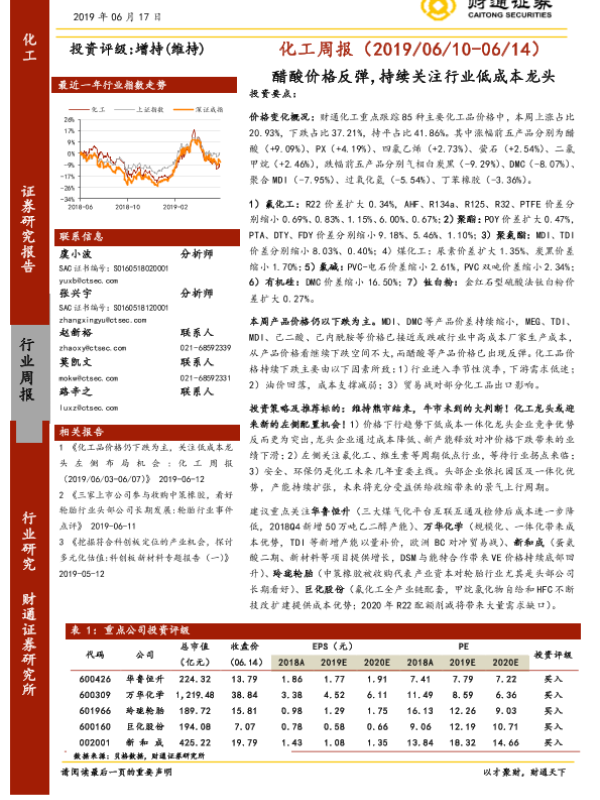 【财通证券】【20190617】20190617-财通证券-化工周报:醋酸价格反弹,持续关注行业低成本龙头-31页