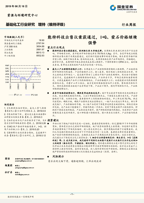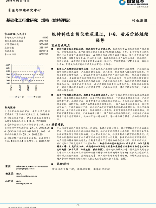 【国金证券】【20190616】20190616-国金证券-基础化工行业周报:能特科技出售议案获通过,I+G、萤石价格继续强势-32页