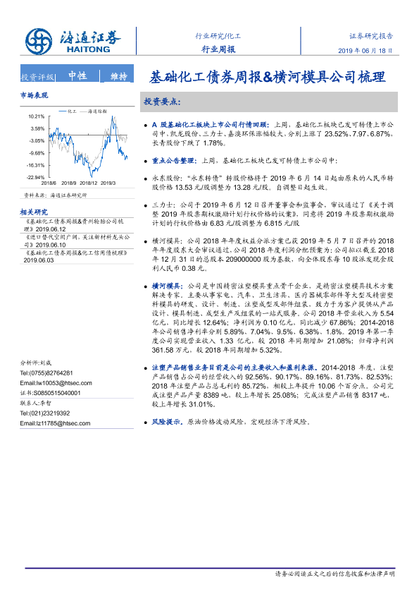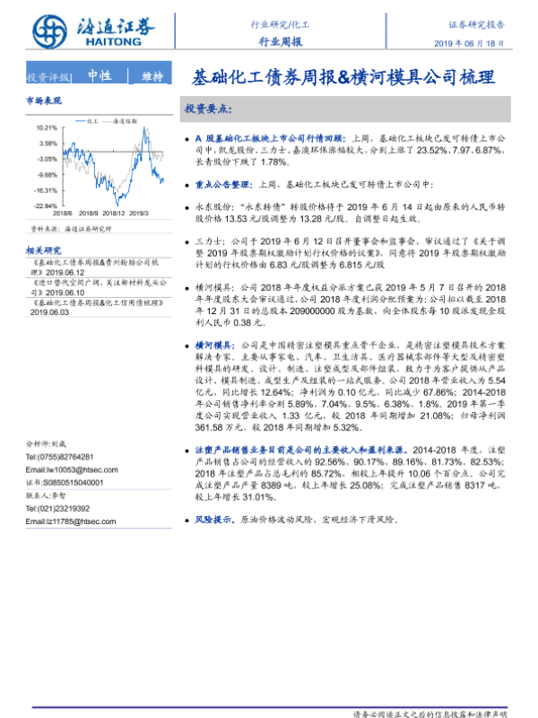 【海通证券】【20190618】20190618-海通证券-化工行业周报:基础化工债券周报&横河模具公司梳理-14页