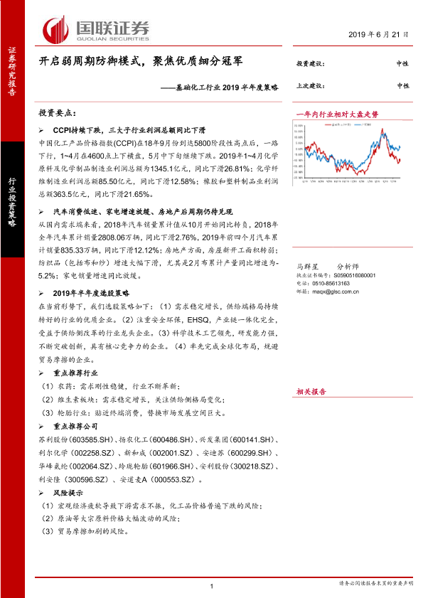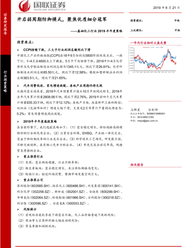 【国联证券】【20190621】基础化工行业2019半年度策略:开启弱周期防御模式,聚焦优质细分冠军-27页
