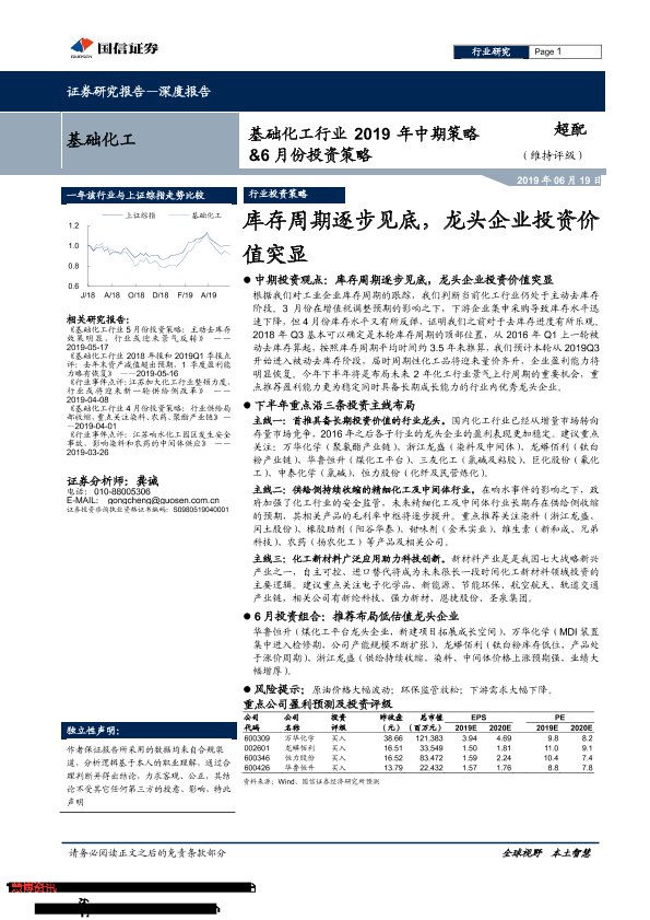 【国信证券】【20190619】基础化工行业2019年中期策略&6月份投资策略:库存周期逐步见底,龙头企业投资价值突显-29页