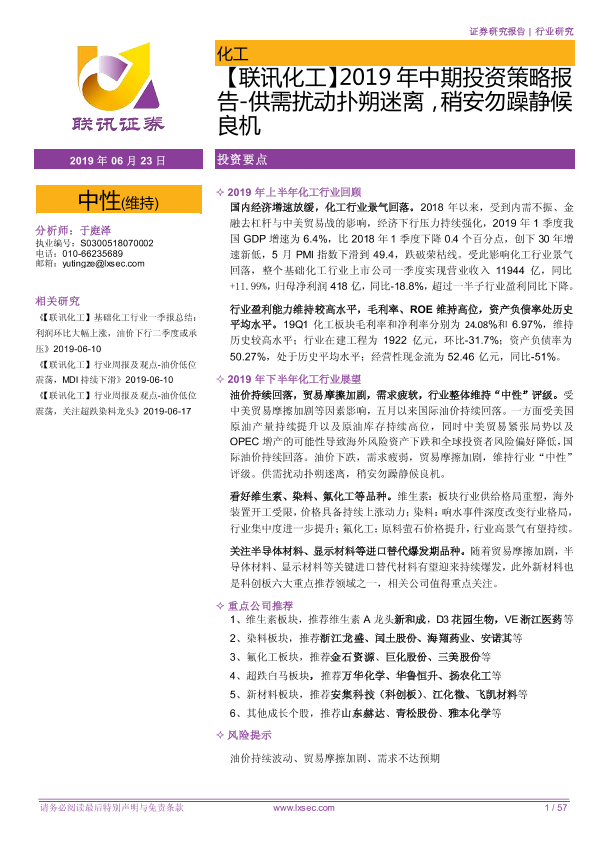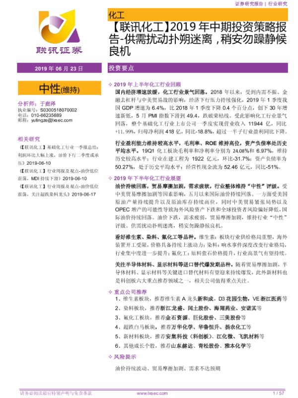 【粤开证券】【20190623】2019年中期投资策略报告-供需扰动扑朔迷离,稍安勿躁静候良机-57页