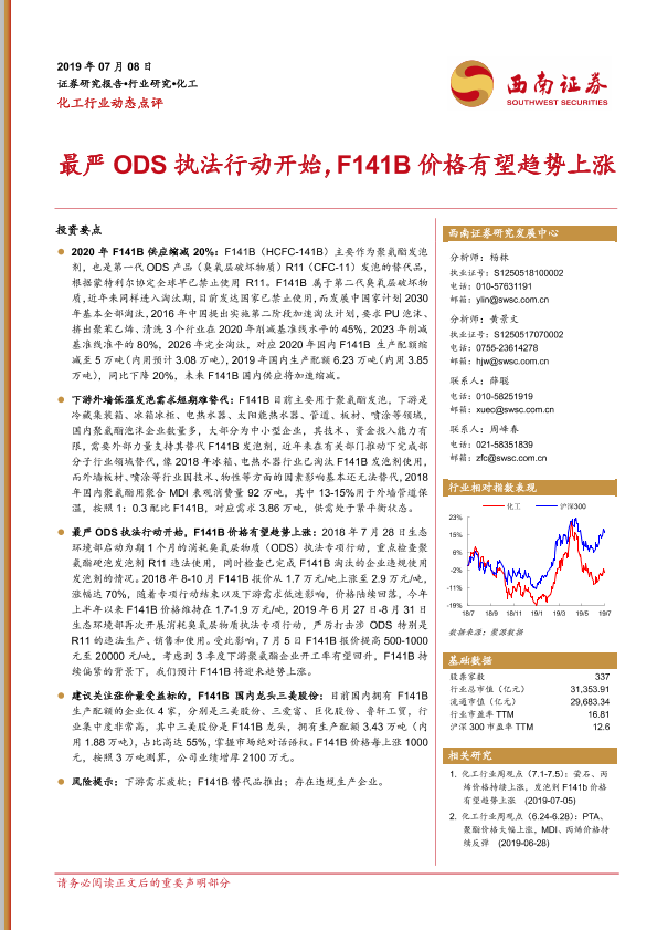 【西南证券】【20190709】化工行业动态点评:最严ODS执法行动开始,F141B价格有望趋势上涨-3页