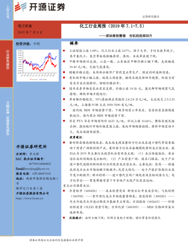 【开源证券】【20190708】20190708-开源证券-化工行业周报:原油维持震荡 有机硅底部回升-17页