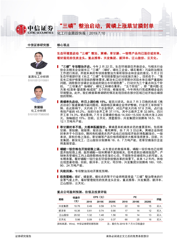 【中信证券】【20190710】“三磷”整治启动,黄磷上涨草甘膦封单-2页