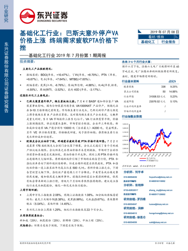 【东兴证券】【20190708】基础化工行业:巴斯夫意外停产VA价格上涨,终端需求疲软PTA价格下挫-35页
