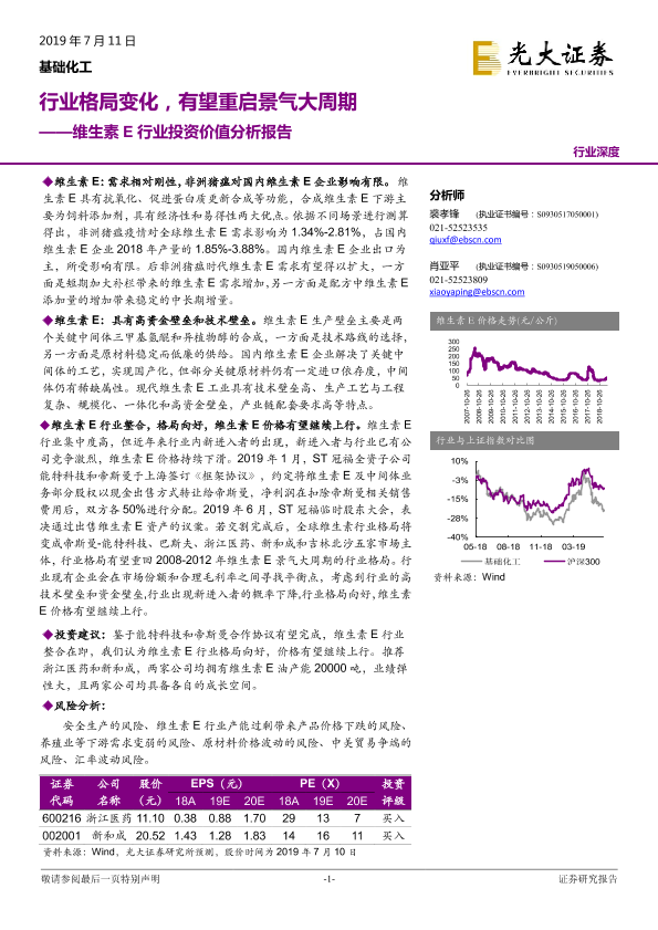 【光大证券】【20190711】维生素E行业投资价值分析报告:行业格局变化,有望重启景气大周期-32页