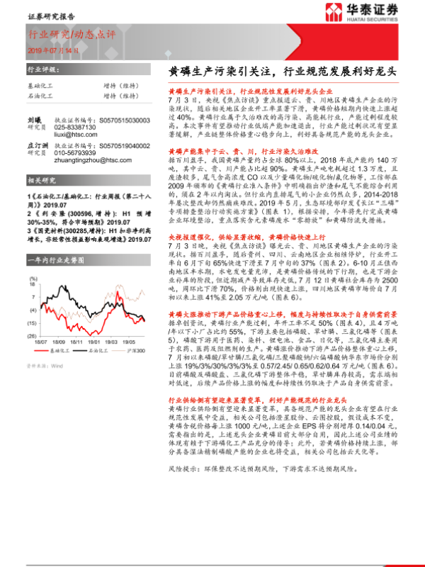 【华泰证券】【20190714】基础化工:黄磷生产污染引关注,行业规范发展利好龙头-4页