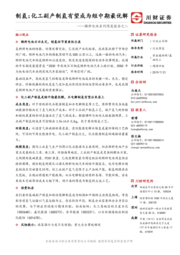 【川财证券】【20190721】制氢:化工副产制氢有望成为短中期最优解-21页