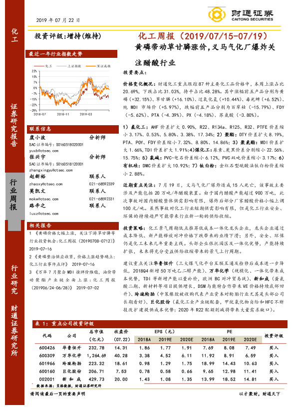 【财通证券】【20190722】20190722-财通证券-化工周报:黄磷带动草甘膦涨价,义马气化厂爆炸关注醋酸行业-31页