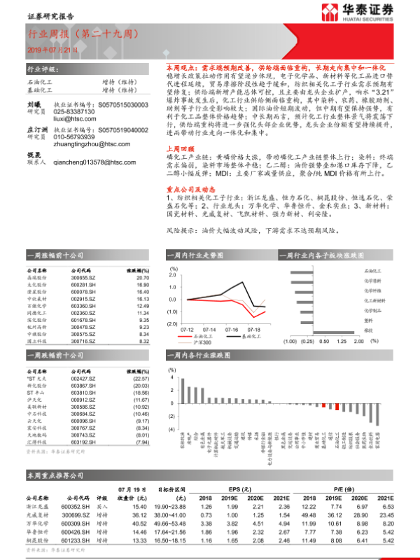 【华泰证券】【20190721】20190721-华泰证券-石油化工 基础化工行业周报(第二十九周)-13页