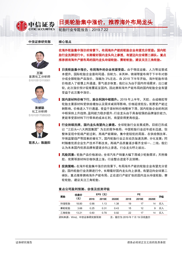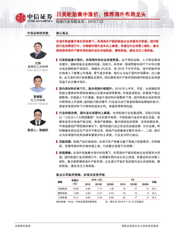 【中信证券】【20190722】20190722-中信证券-轮胎行业专题报告:日美轮胎集中涨价,推荐海外布局龙头-16页