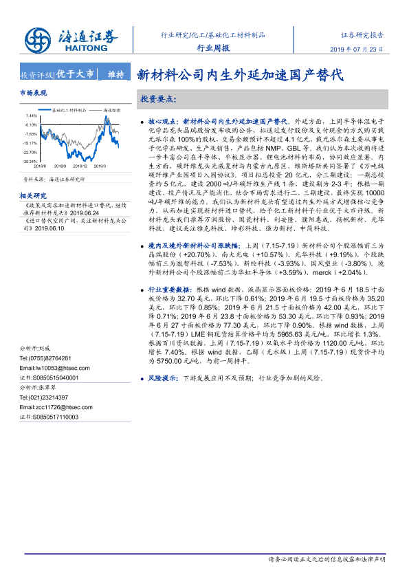 【海通证券】【20190723】基础化工材料制品行业周报:新材料公司内生外延加速国产替代-8页