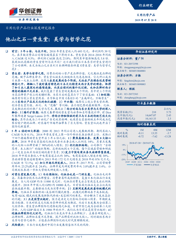 【华创证券】【20190728】20190728-华创证券-日用化学产品行业深度研究报告:他山之石—资生堂:美学与哲学之花-22页