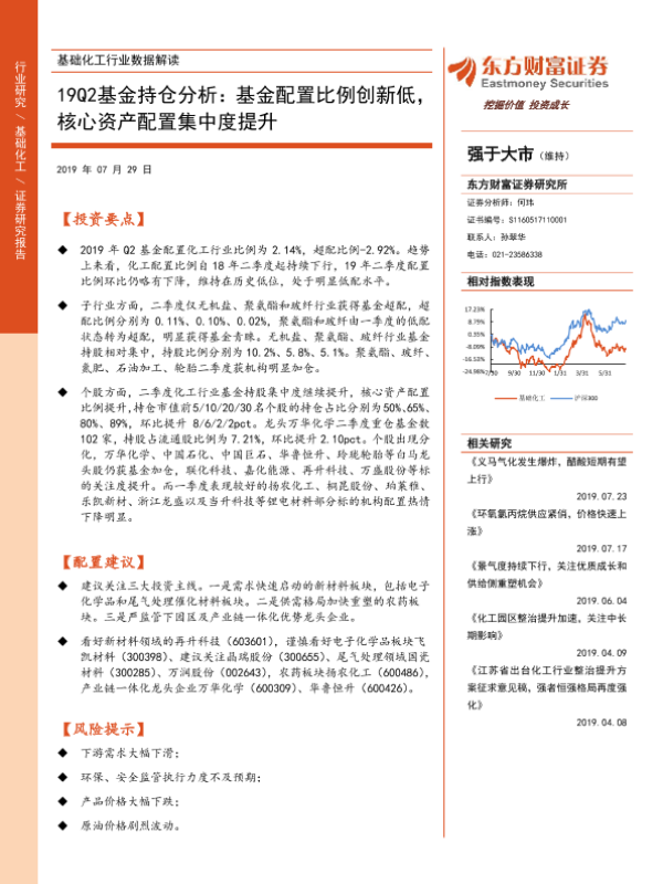 【东方财富证券】【20190729】20190729-东方财富证券-基础化工行业数据解读:19Q2基金持仓分析:基金配置比例创新低,核心资产配置集中度提升-10页