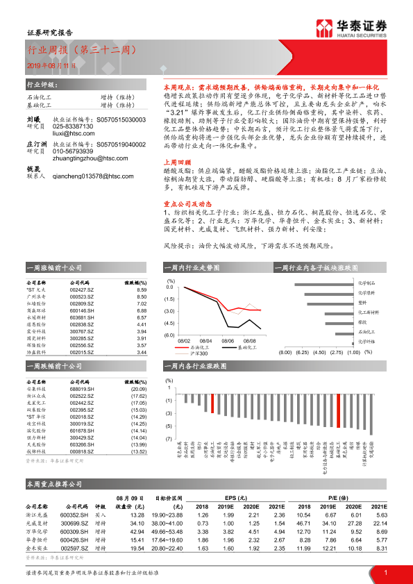 【华泰证券】【20190811】20190811-华泰证券-石油化工 基础化工行业周报(第三十二周)-12页