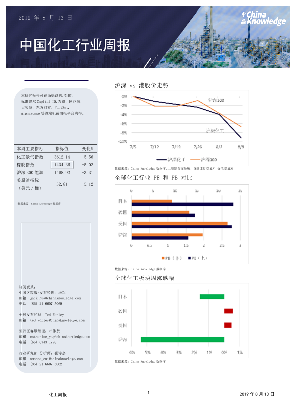 【China Knowledge】【20190813】20190813-China Knowledge-中国化工行业周报-12页