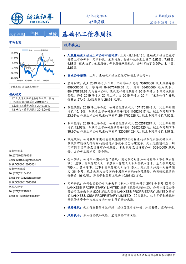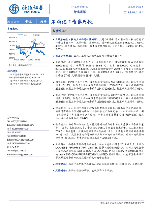 【海通证券】【20190819】20190819-海通证券-基础化工债券周报-14页