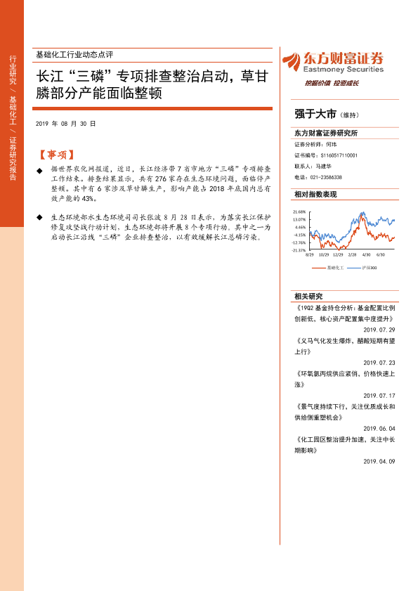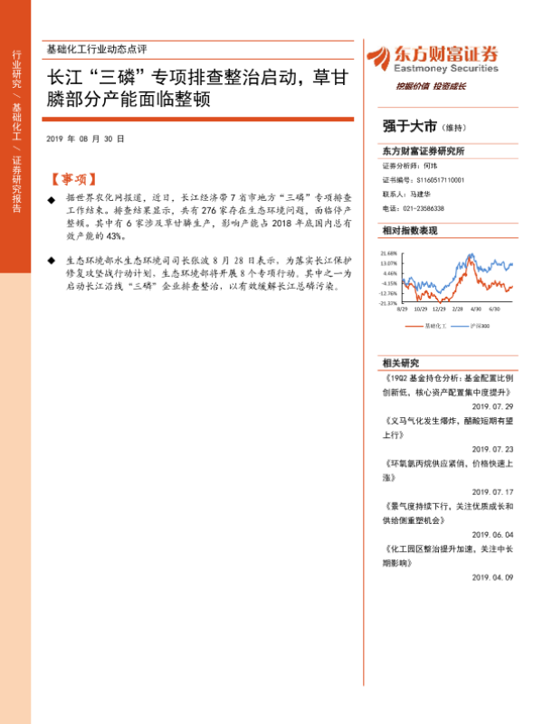 【东方财富证券】【20190830】基础化工行业动态点评:长江“三磷”专项排查整治启动,草甘膦部分产能面临整顿-5页