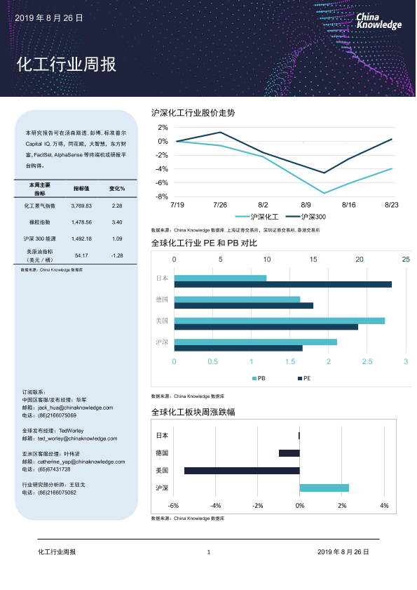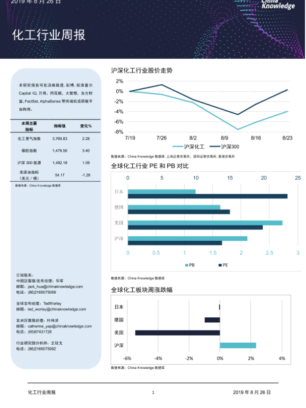 【China Knowledge】【20190826】20190826-China Knowledge-化工行业周报-14页