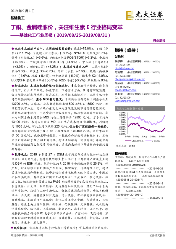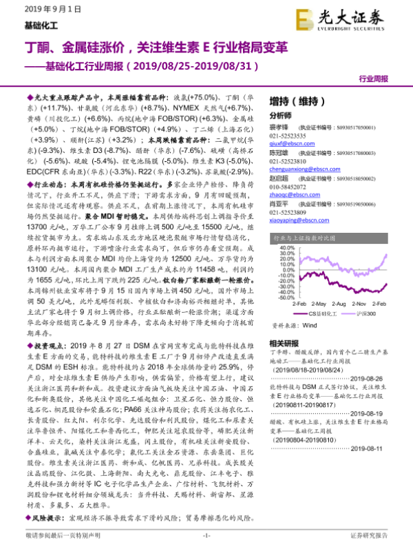 【光大证券】【20190901】基础化工行业周报:丁酮、金属硅涨价,关注维生素E行业格局变革-19页