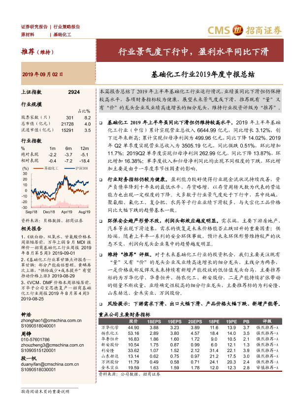 【海通证券】【20190902】基础化工行业2019年度中报总结:行业景气度下行中,盈利水平同比下滑-24页