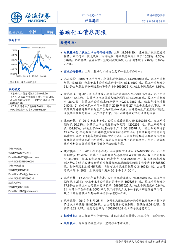 【海通证券】【20190903】20190903-海通证券-化工行业周报:基础化工债券周报-14页